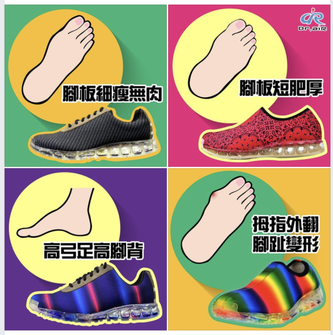 Dr.aiR 3D氣墊鞋依照不同的運動方式,再搭配個人腳型條件,挑選專屬自己雙腳的鞋款,讓雙腳排除不適感,更健…